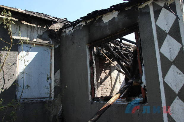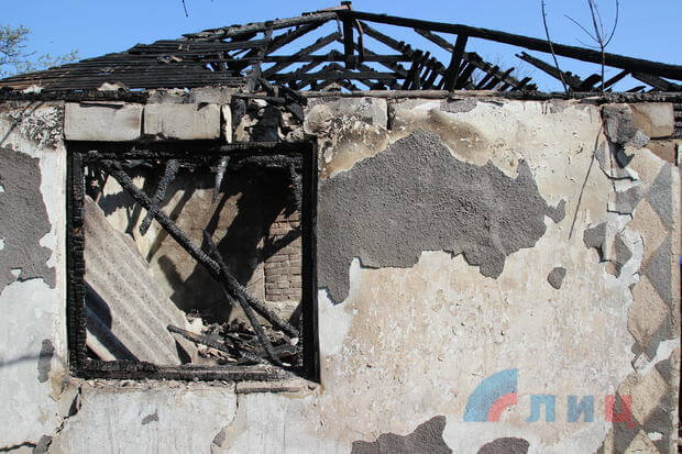 В результате обстрела, осуществленного киевскими силовиками 28 апреля, один из жилых домов практически полностью сгорел.