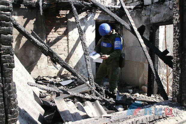 Сотрудники представительства ЛНР в Совместном центре по контролю и координации режима прекращения огня (СЦКК) зафиксировали последствия обстрела поселка городского типа Донецкий со стороны ВСУ.